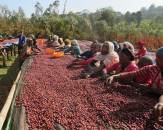 グジG-1はウェストグジ地区のオロミア地方、海抜 2,150 メートルで栽培されてます。ここ一帯の中で最も高い場所この地域は豊かな自然に囲まれコーヒー栽培に適した条件(標高の高さ・肥沃な水はけの良い土壌・昼夜の寒暖差)の中で育まれたコーヒーチェリーは、更に人の手により丁寧に収穫、乾燥、選別されていきます。丹精込めて育てられた最高品質のG1が持つ独特の香りは別格です。華やかな香りとワインの様な風味、そして、しっかりとしたボディー、ジューシーな酸味が魅力の一杯は、他の豆では味わえない特別な風味を持っています。